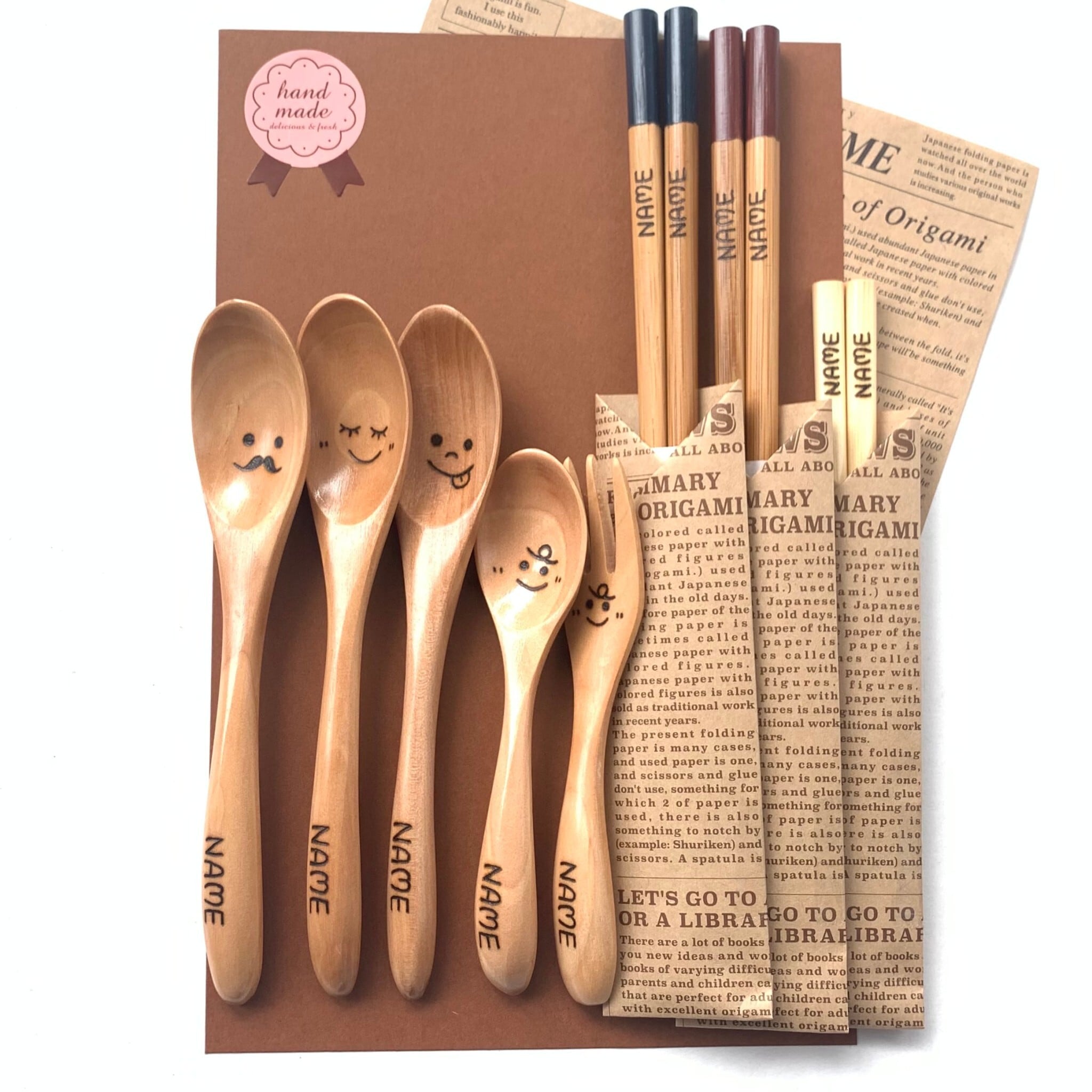 夫婦箸と木製スプーン3本セット(内1セットベビー向けスプーン・フォーク)