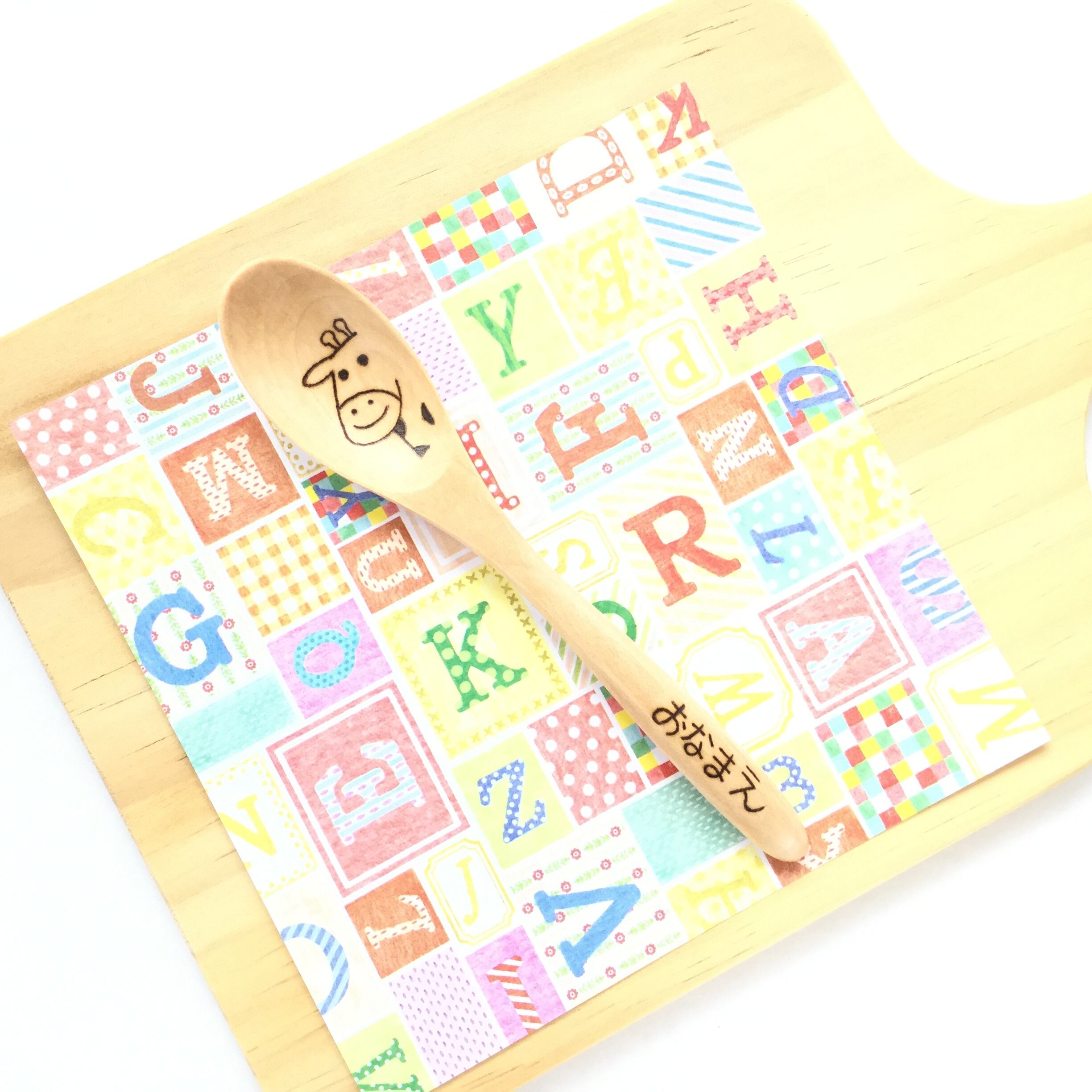 木製スプーンの持ち手にお名前を焼きつけます♡
